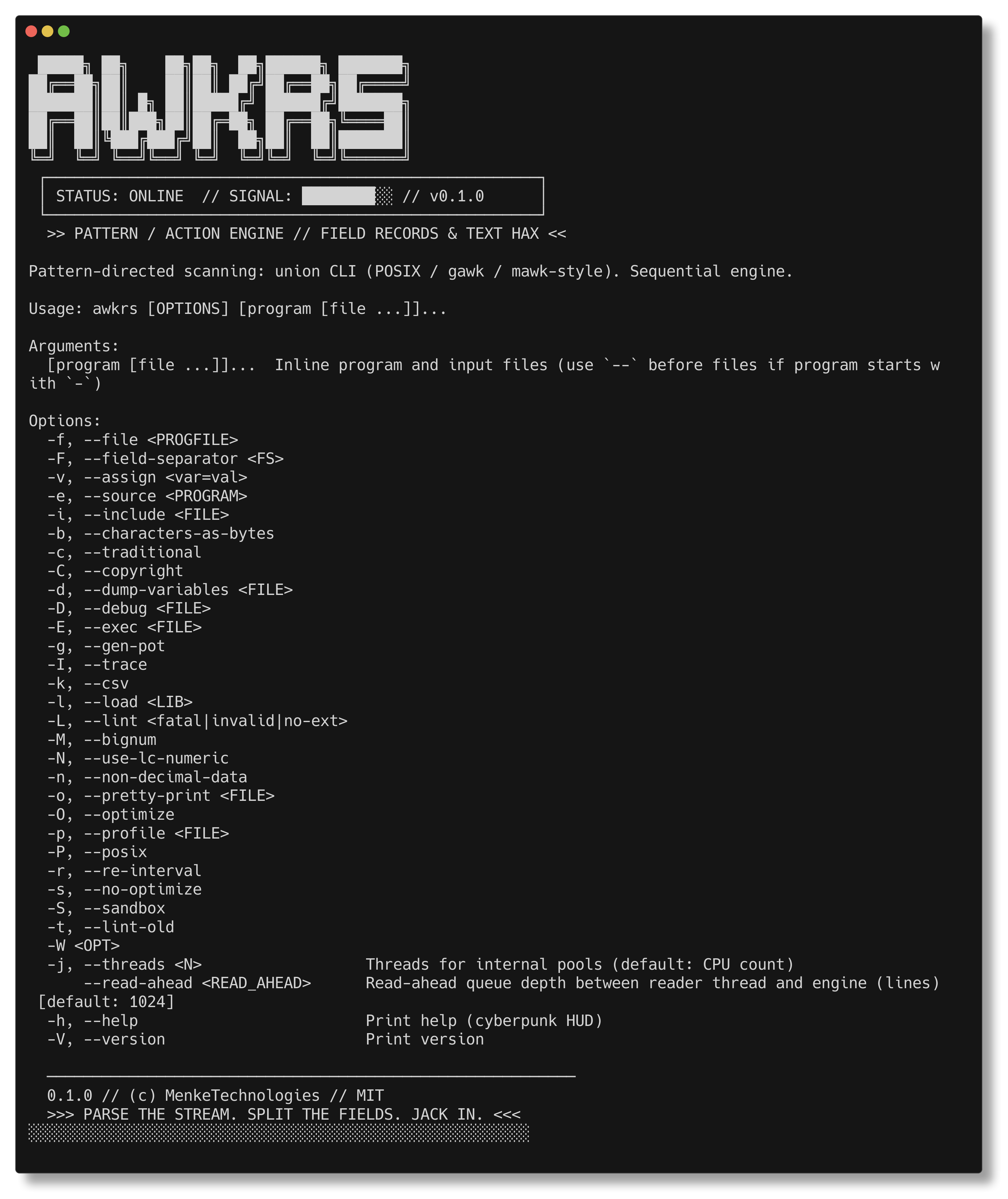 Awk implementation in Rust with broad CLI compatibility, parallel records, and experimental Cranelift JIT
