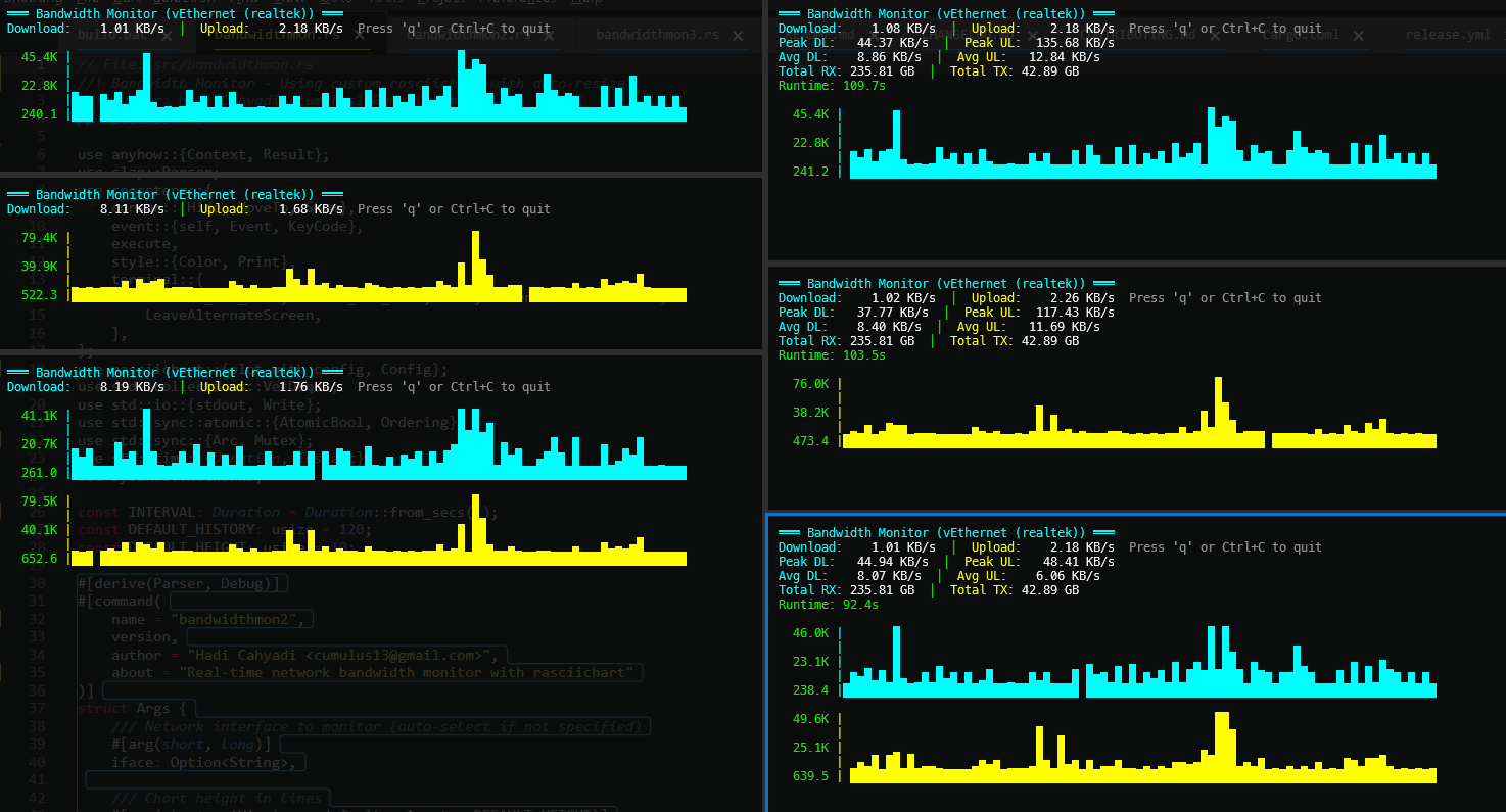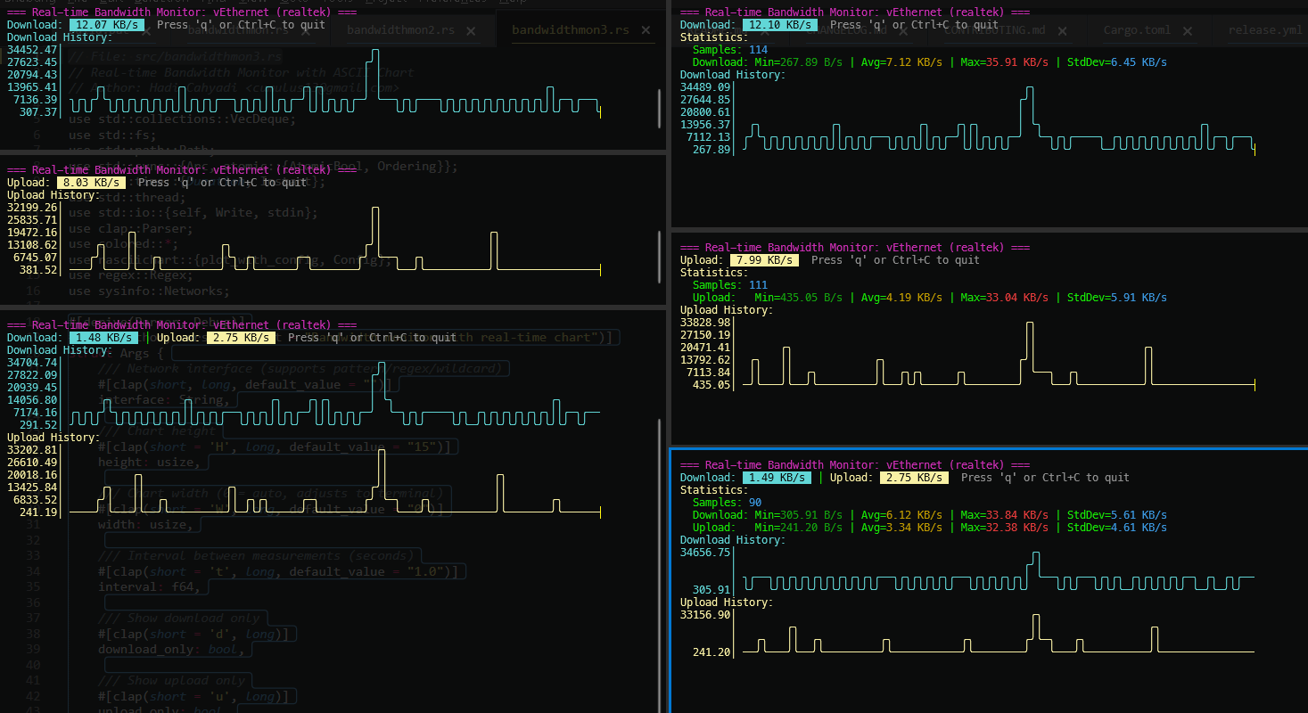 Real-time network bandwidth monitor with beautiful ASCII charts