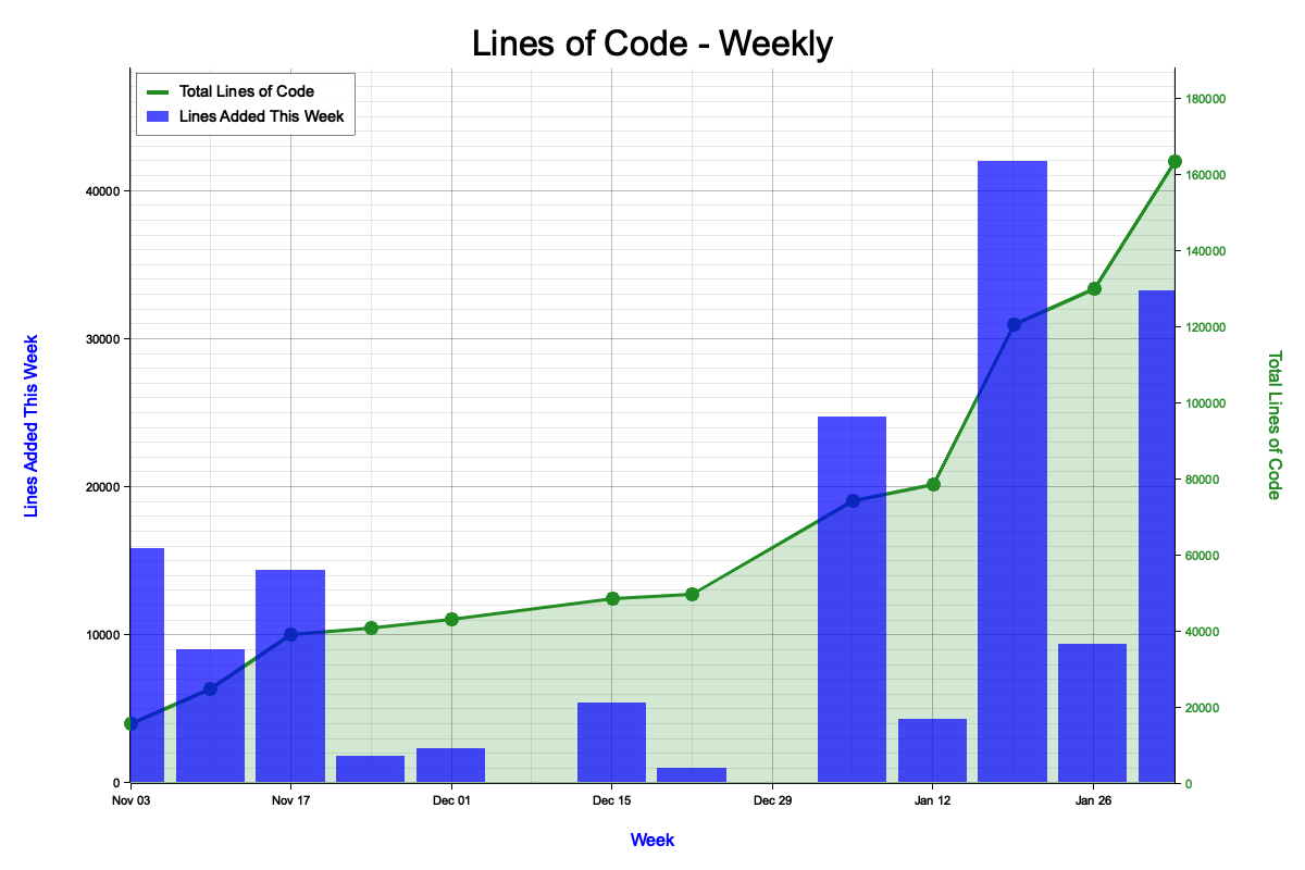 Measure the heartbeat of your codebase — visualize lines of code over time from git history