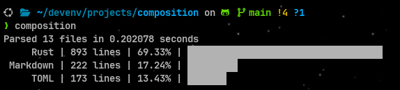 **composition** is a modular lines-of-code CLI tool to analyze and display code composition in directories