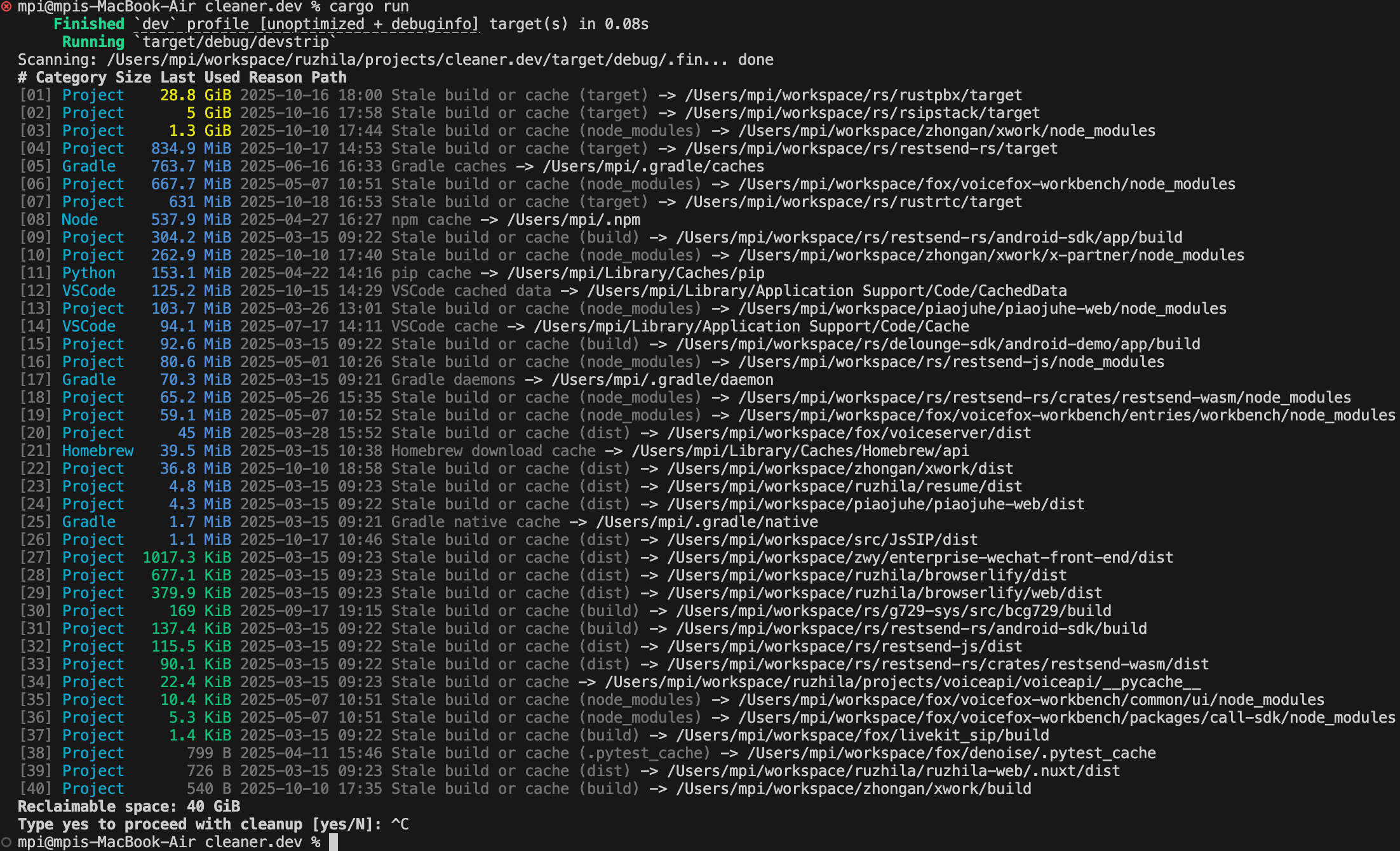 Developer disk cleanup tool