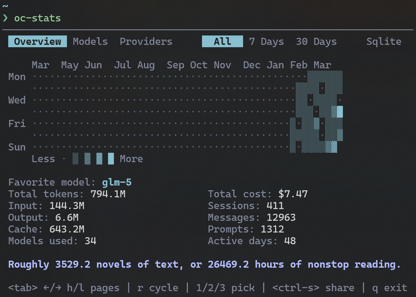 A terminal dashboard for OpenCode usage statistics inspired by the /stats command in Claude Code
