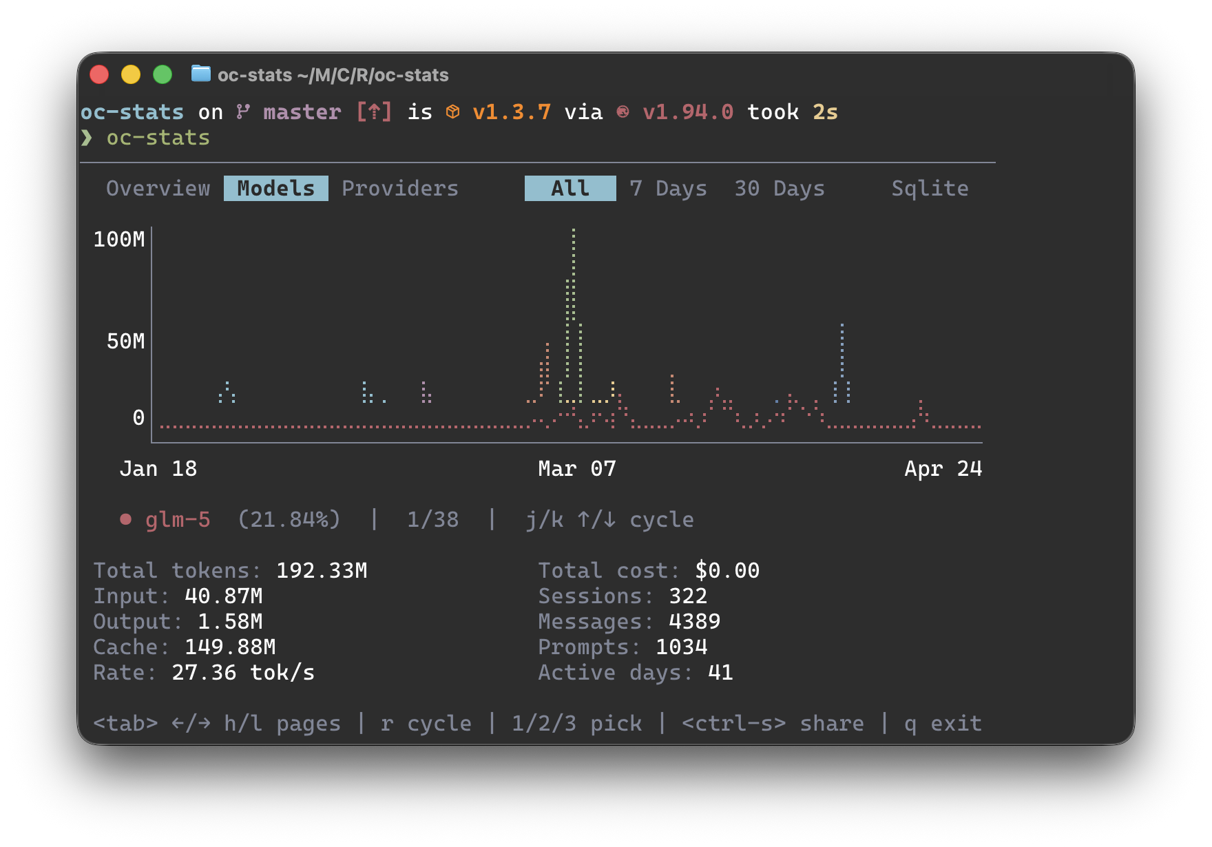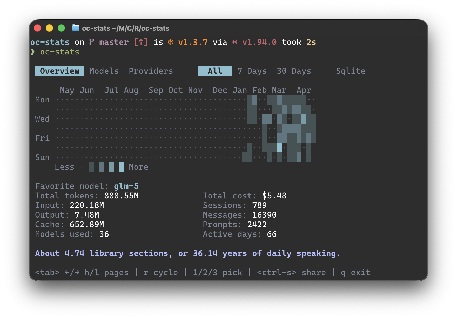A terminal dashboard for OpenCode usage statistics inspired by the /stats command in Claude Code