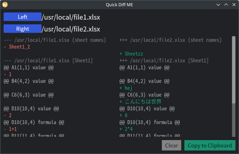 Quick Diff (unified diff) on Microsoft Excel viewer as Iced GUI app