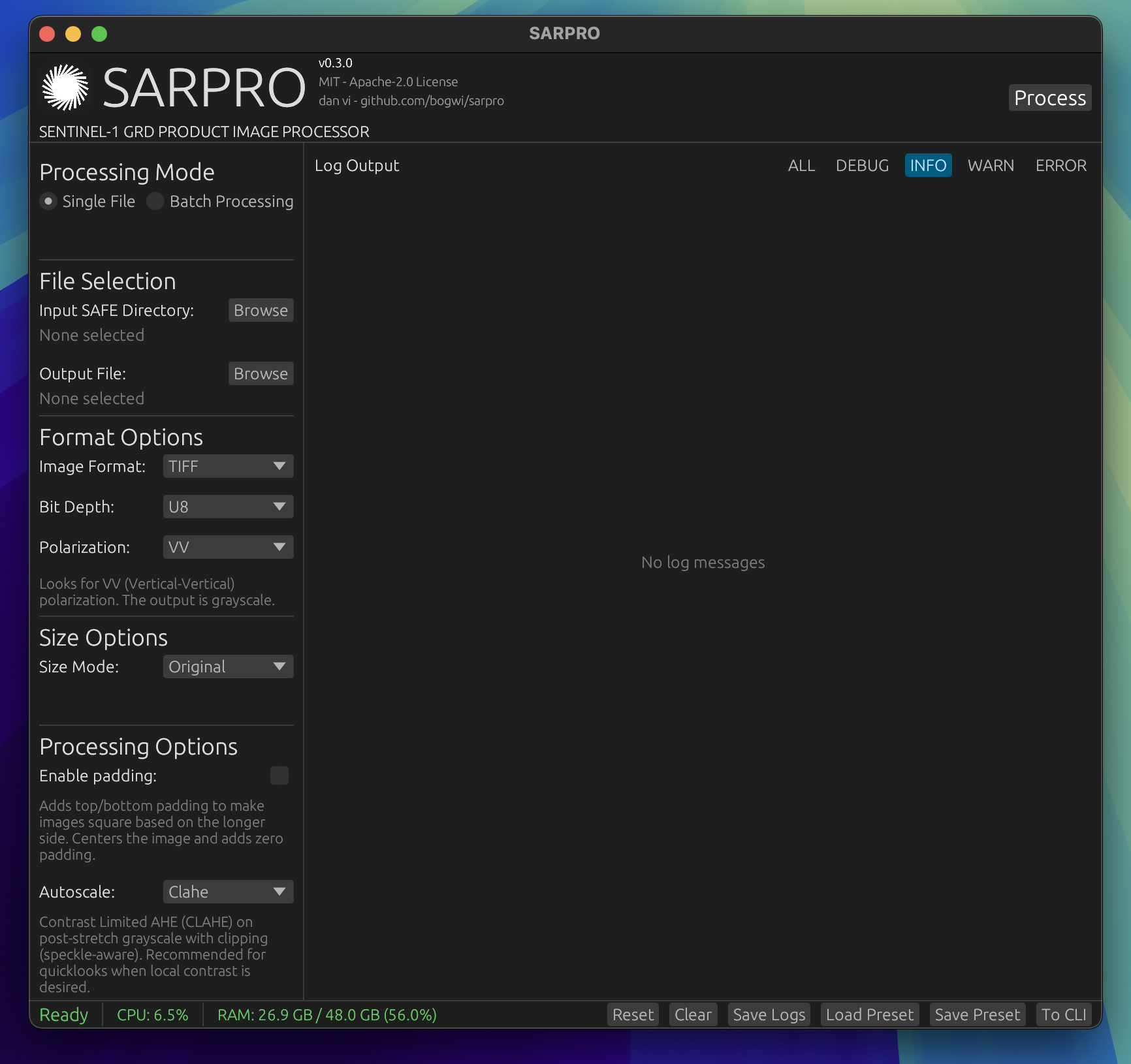 A high-performance Sentinel-1 Synthetic Aperture Radar (SAR) GRD product to image processor.