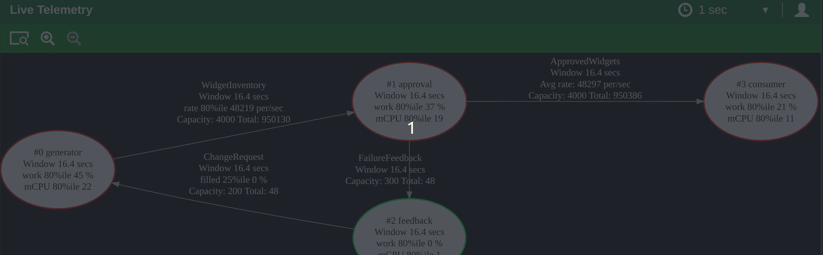 Framework for building long runnnig low latency actor based services on Linux. Provides visual telemetry to watch data flows between actors. Uses earlang style supervisors to defend against panics and uses non blocking async ringbuffers for inter actor communication.