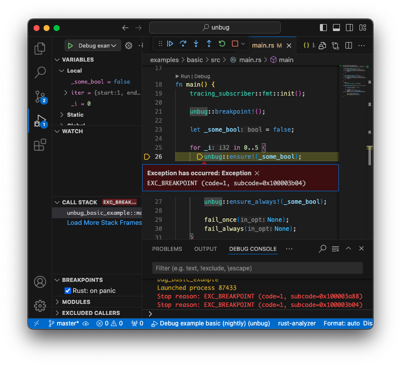 A crate to programmatically invoke debugging breakpoints with helping macros