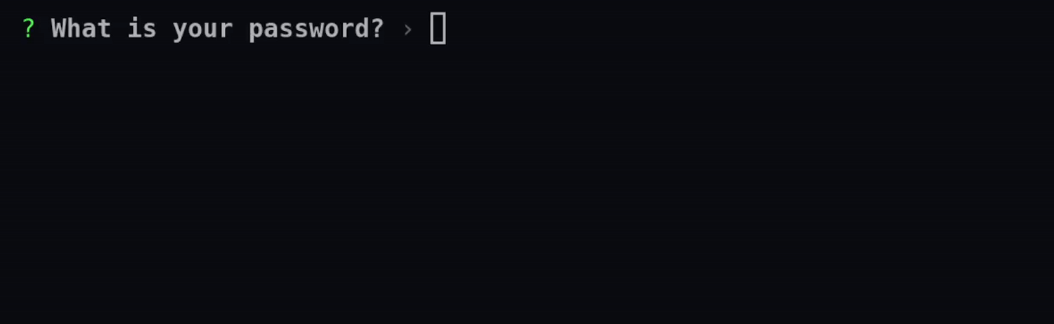 use requestty::Question; let password = Question::password("password") .message("What is your password?") .mask('*') .build();